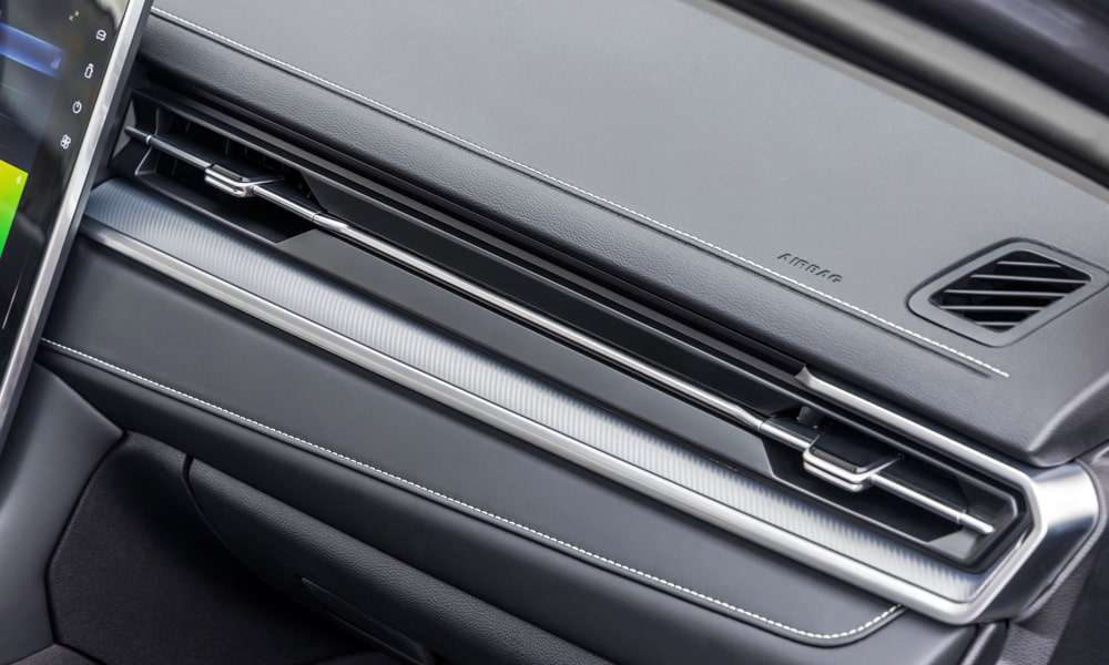 | Кожаная отделка сидений черного цвета с декоративной прострочкой, перфорацией и декоративными вставками |